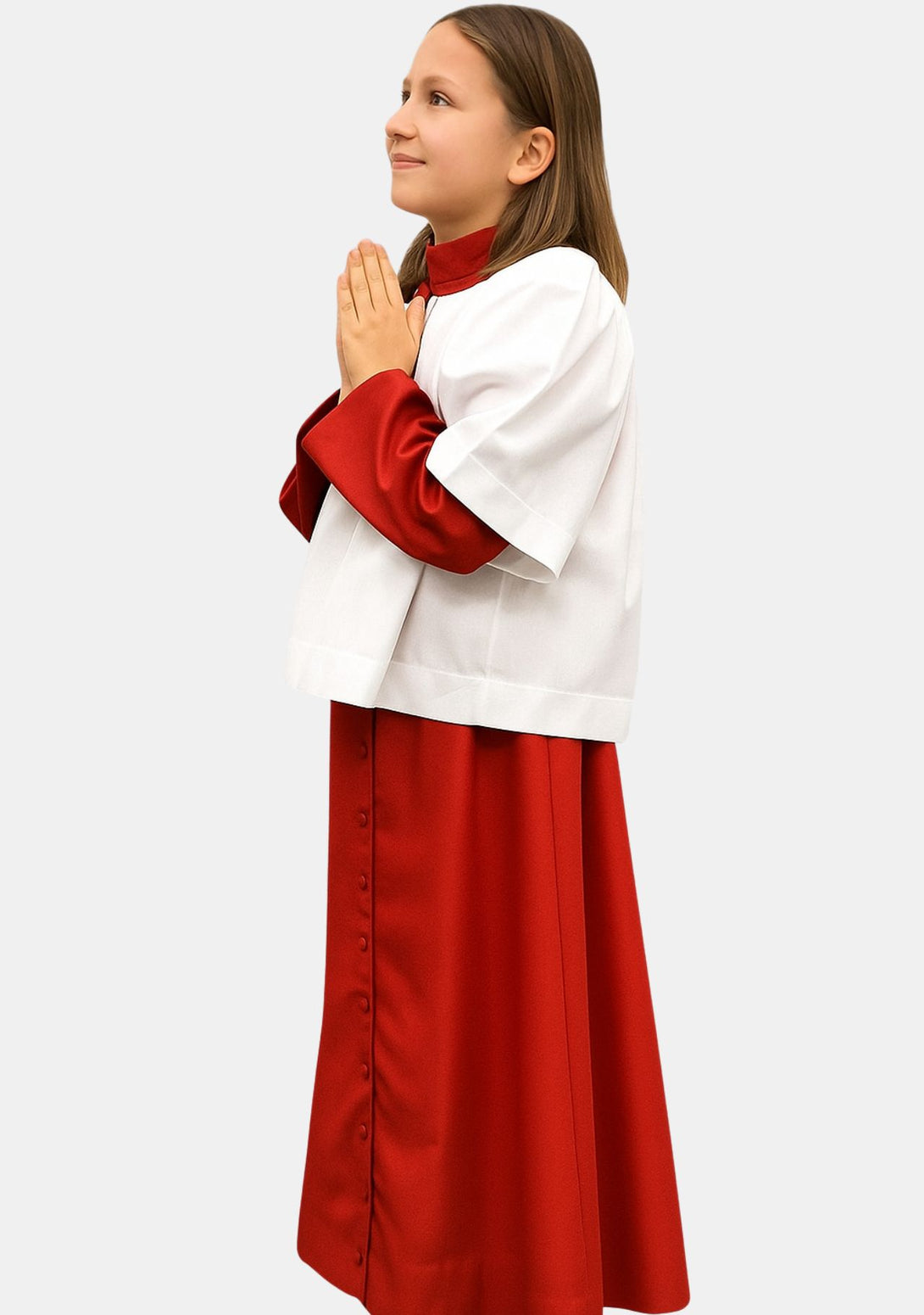 Donnez à votre enfant un sentiment d'appartenance et de fierté avec notre soutane d'enfant d'autel d'un rouge éclatant. Idéale pour les jeunes assistants, cette magnifique soutane s'inspire des riches traditions de l'Église. Inspirée des robes portées à l'époque biblique, elle contribue à la fierté et au sentiment d'appartenance de votre enfant à la communauté ecclésiale.
