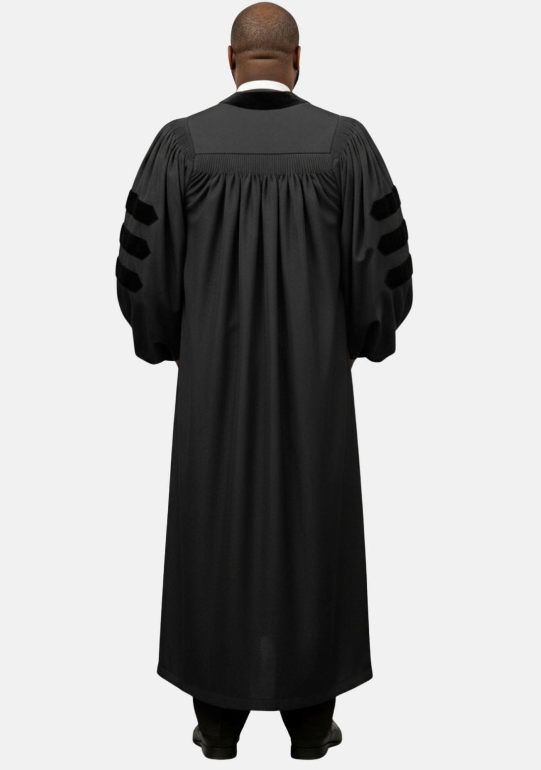 Order the Kaniel Black Pulpit Robe with Doctoral Bars today and elevate your ministry presence.