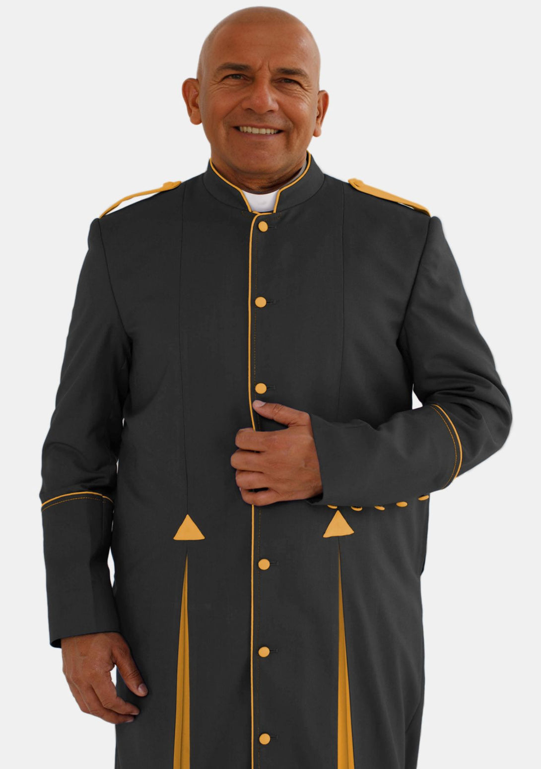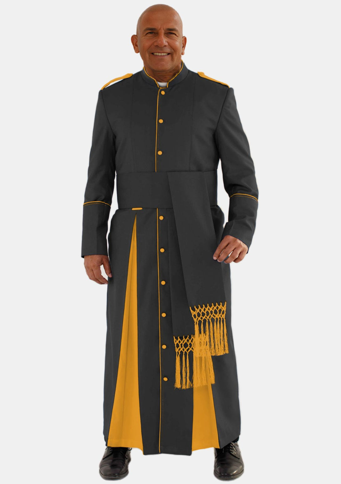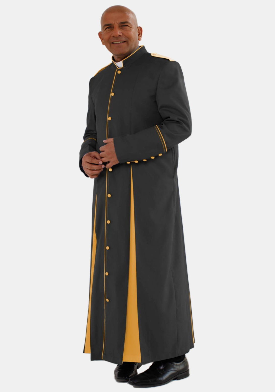 Lead with Elegance in the Men’s Clergy Robe Black with Gold Contrast