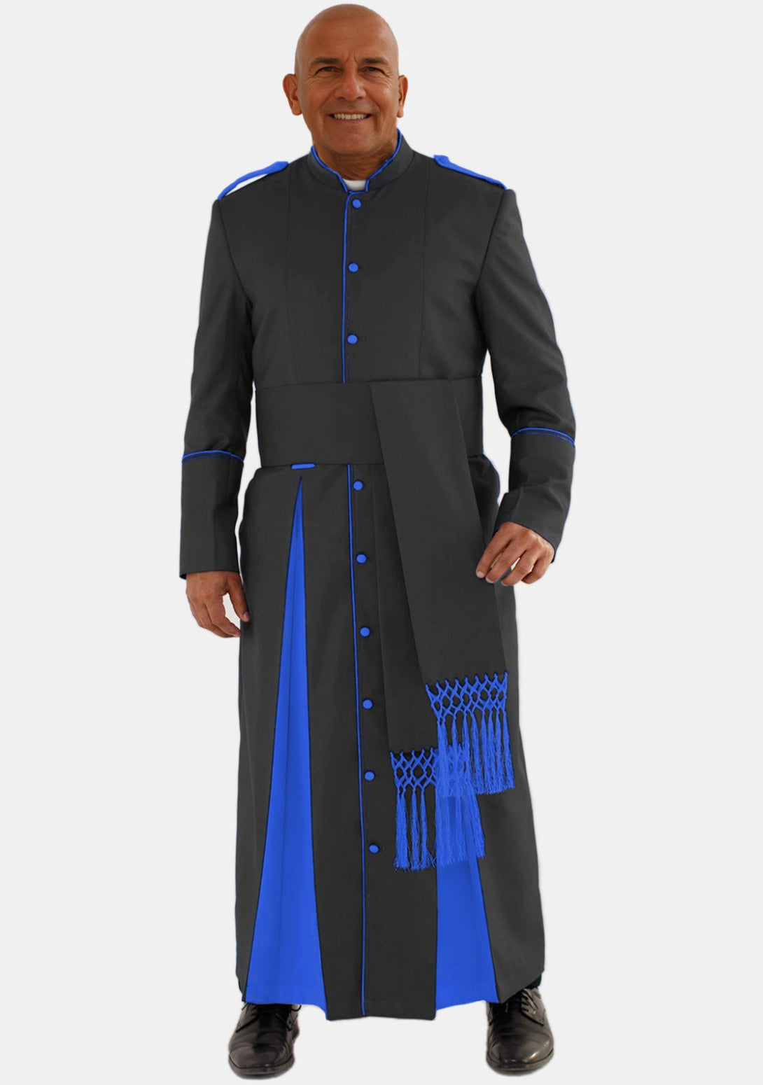 Serve with Confidence in the Haruz Clergy Robe for Men Black with Royal Blue Contrast