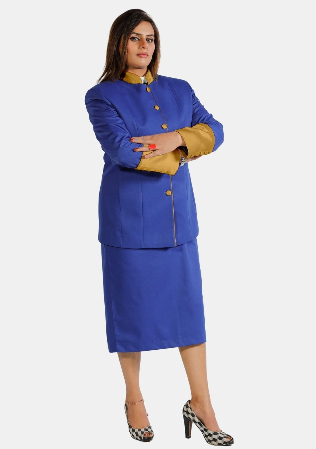 Tailleur jupe clergé pour femme bleu roi Un mélange de majesté et de ministère