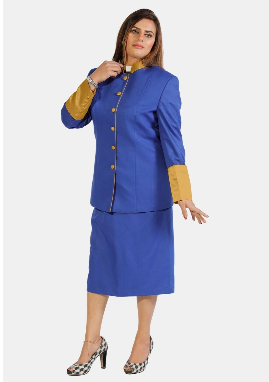 Les tailleurs jupes pour femmes du clergé, de couleur bleu roi, vous invitent à assumer votre rôle ministériel avec dignité, grâce et style. Ils témoignent de la force, du dévouement et du leadership des femmes dans le ministère. Ces tailleurs vous permettent de vous démarquer en tant que représentante de votre foi et leader au sein de votre communauté.