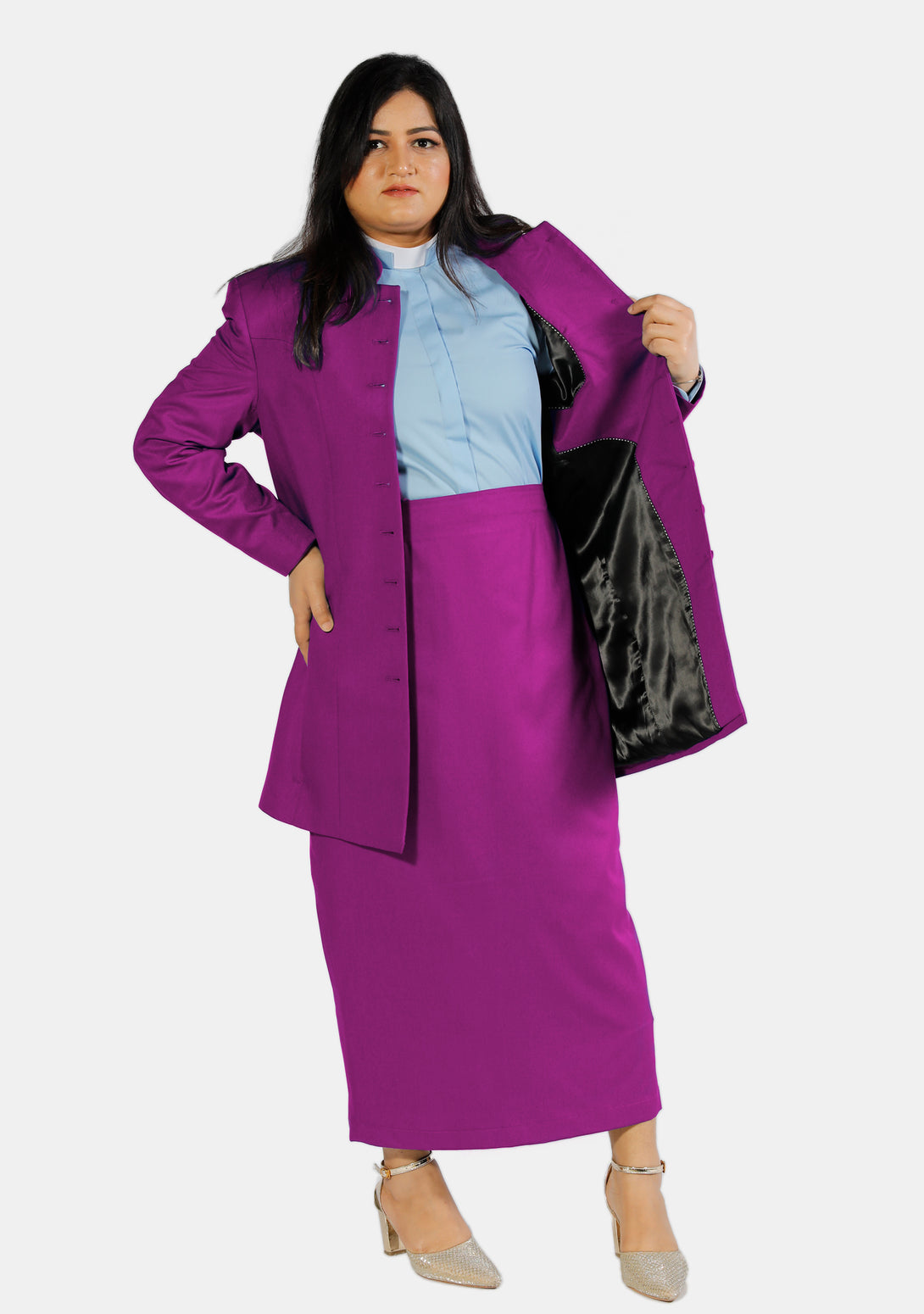 Costume de clergé pour femme en rouge violet : une fusion de passion et de dignité