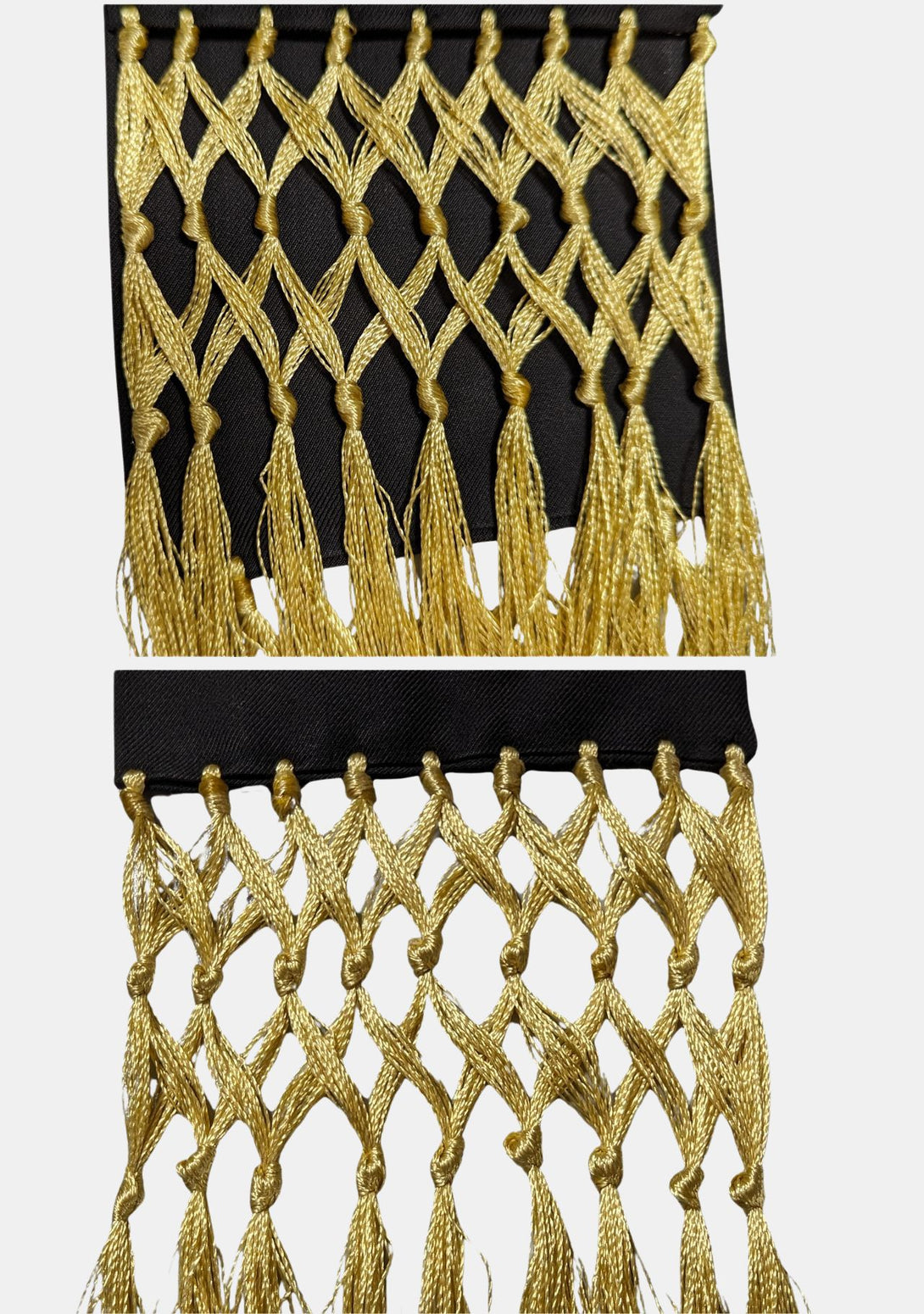 - Détail de frange élégant : Rehaussée de franges nouées aux extrémités de la ceinture, la ceinture respire la sophistication et ajoute une touche d'élégance à la tenue cléricale.