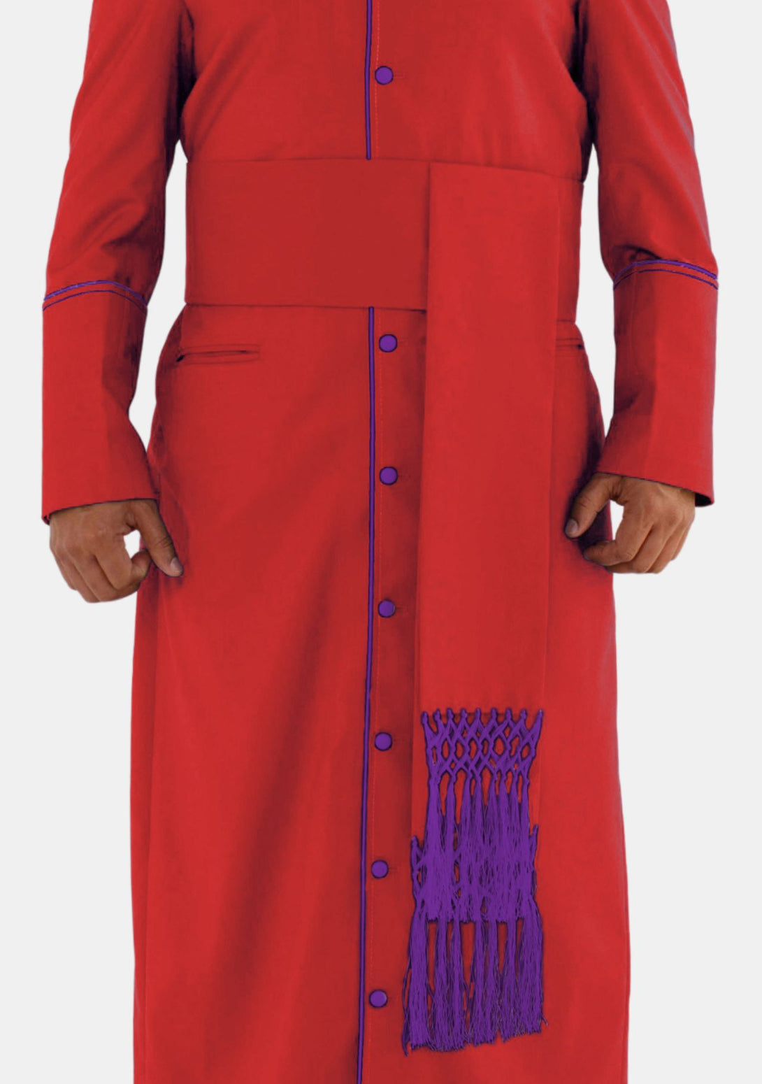 Ceinture rouge à franges nouées violettes romaines – Conçue pour le clergé