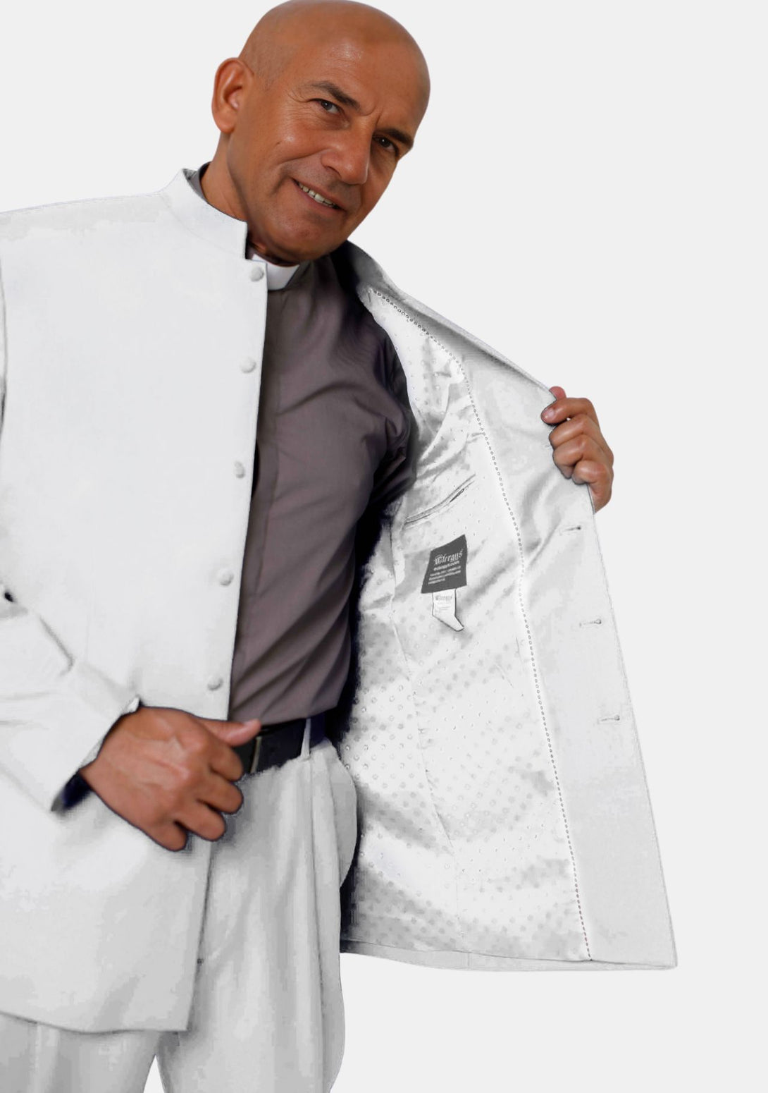 Le costume de clergé à col bandé Godlyness pour homme en blanc est parfait pour les services religieux, les mariages et les événements spéciaux, vous assurant de faire une impression mémorable tout en incarnant le professionnalisme et la grâce.