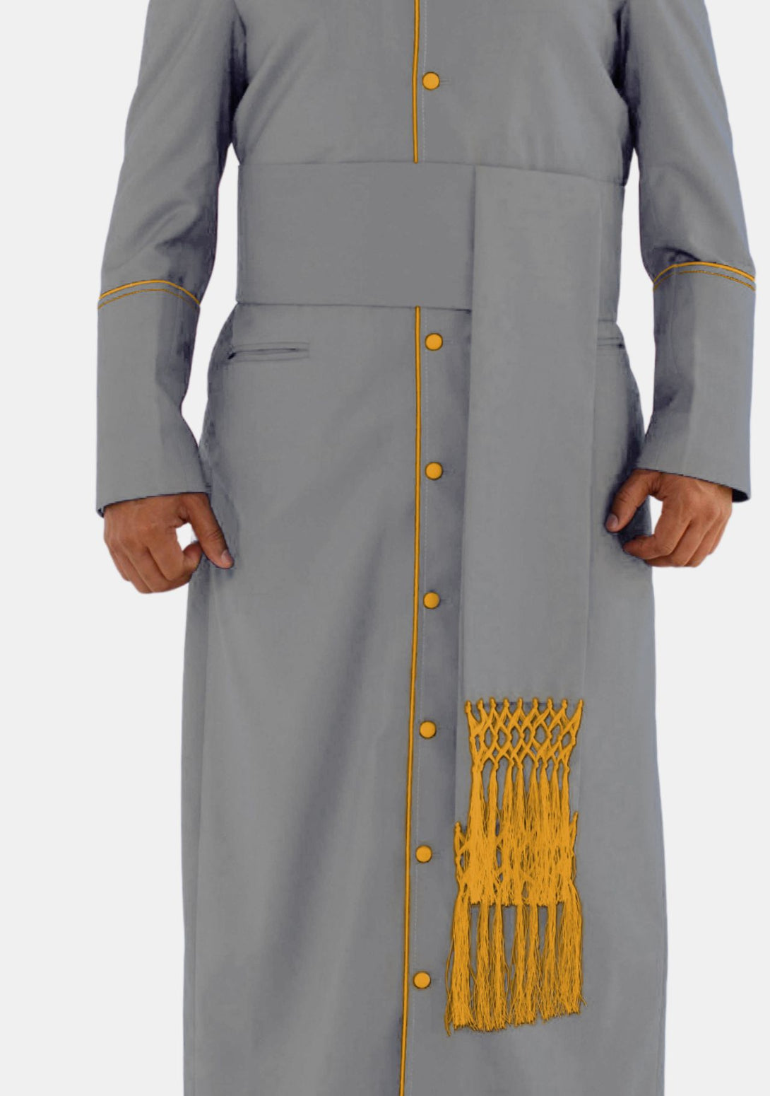 La ceinture grise s'accorde avec diverses tenues liturgiques tout en apportant une touche de tradition et de grâce. Son ton neutre en fait un choix pratique en toute occasion, tandis que ses franges dorées apportent une touche unique et raffinée.