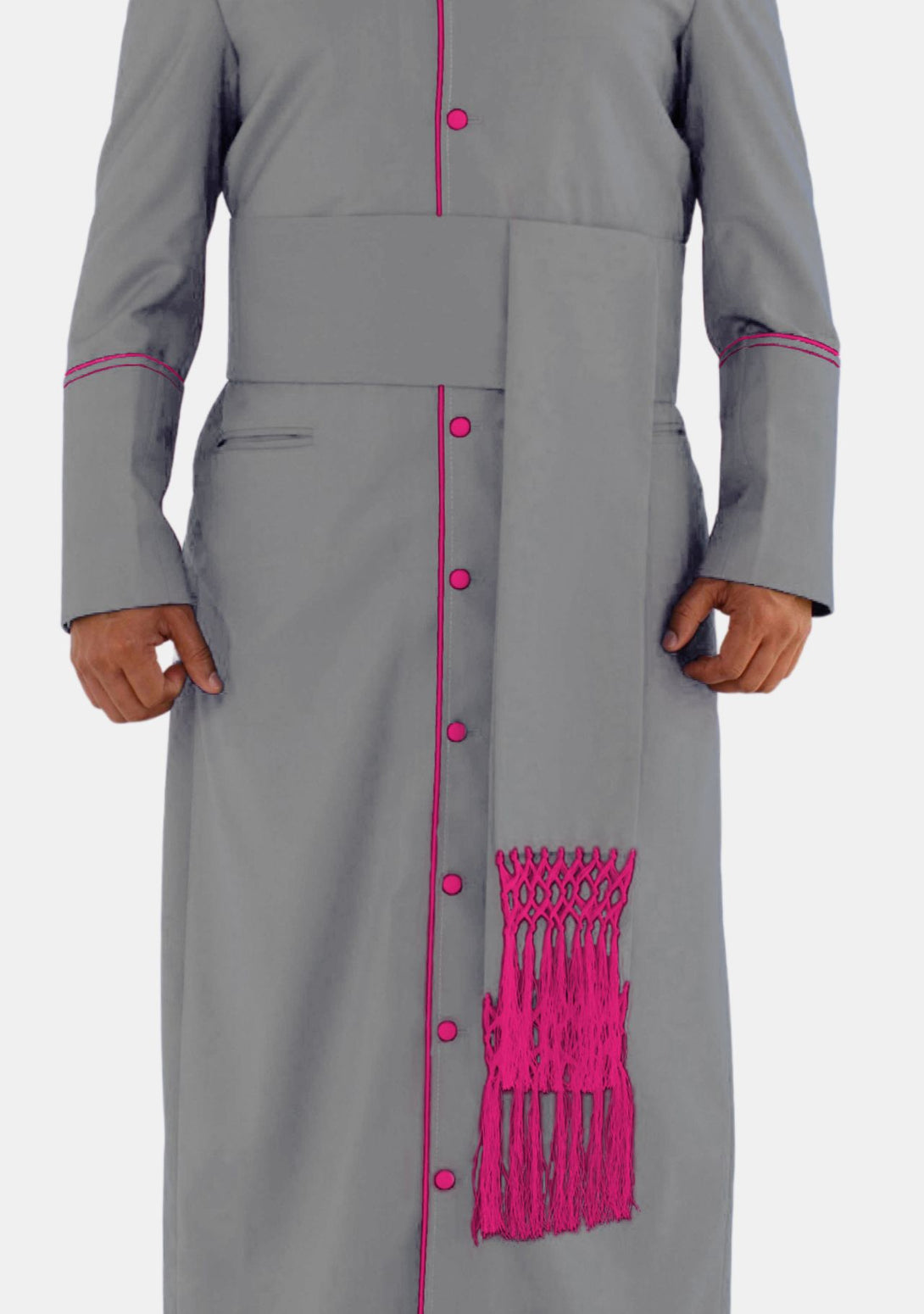 Parfait pour une utilisation dans des contextes liturgiques tels que la messe, les ordinations ou d'autres événements ecclésiastiques, la ceinture à bande grise avec franges rouges violettes est un accessoire essentiel pour le clergé à la recherche d'un équilibre entre tradition, fonctionnalité et style.