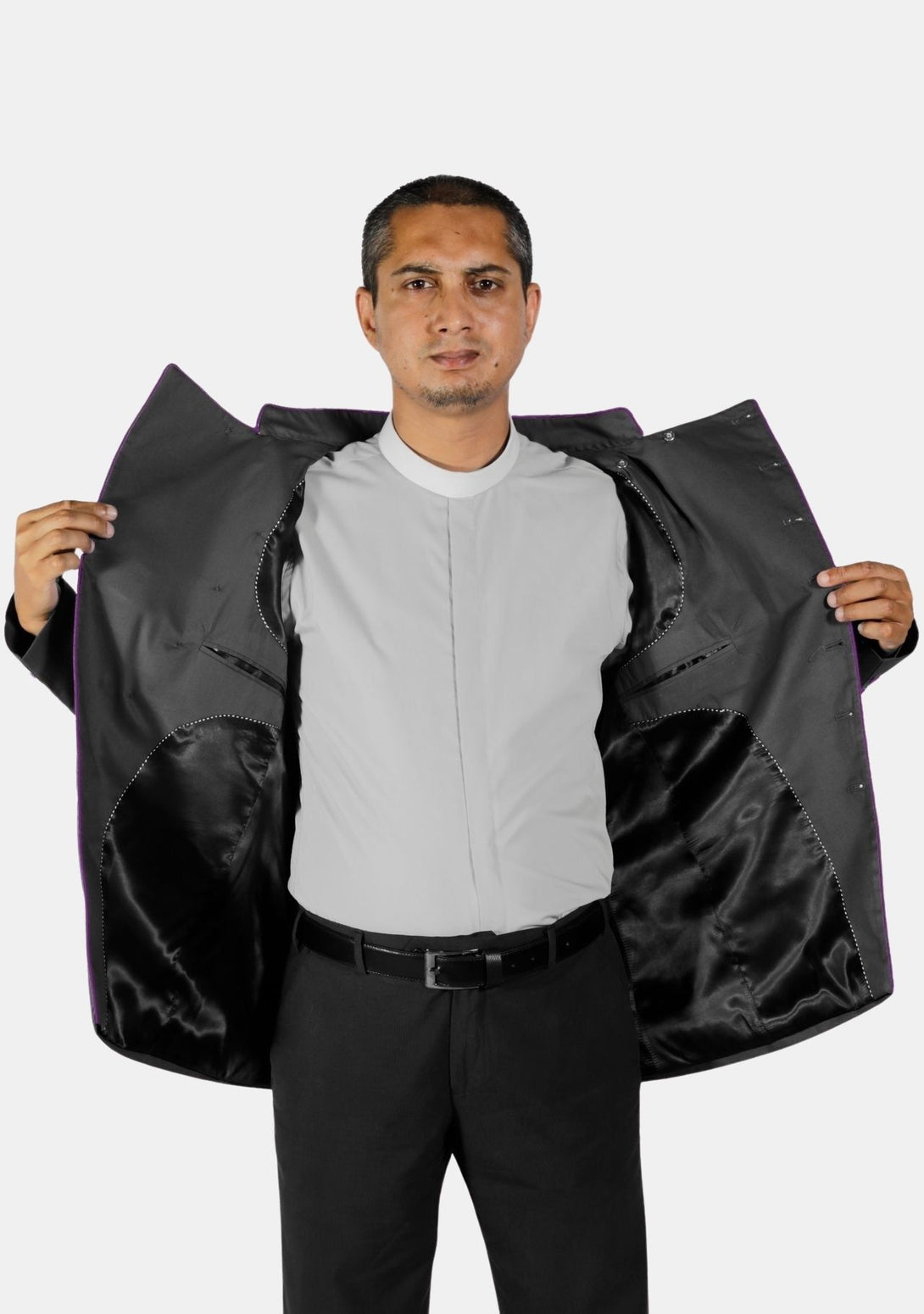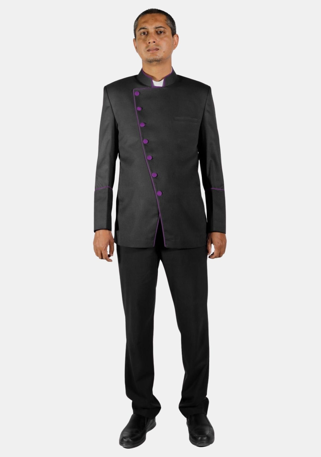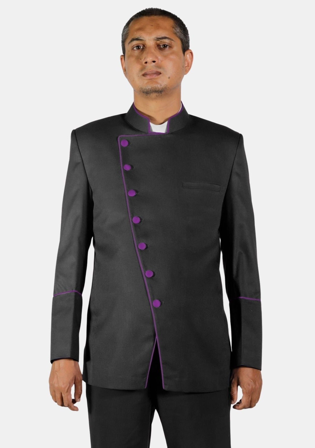 La veste « Immortal Pastor Jackets Double Breasted Frock – Black/Purple » reflète cette idée. Elle allie un style intemporel à des couleurs originales pour donner aux membres du clergé une allure et un sentiment d'importance dans l'accomplissement de leurs devoirs religieux.