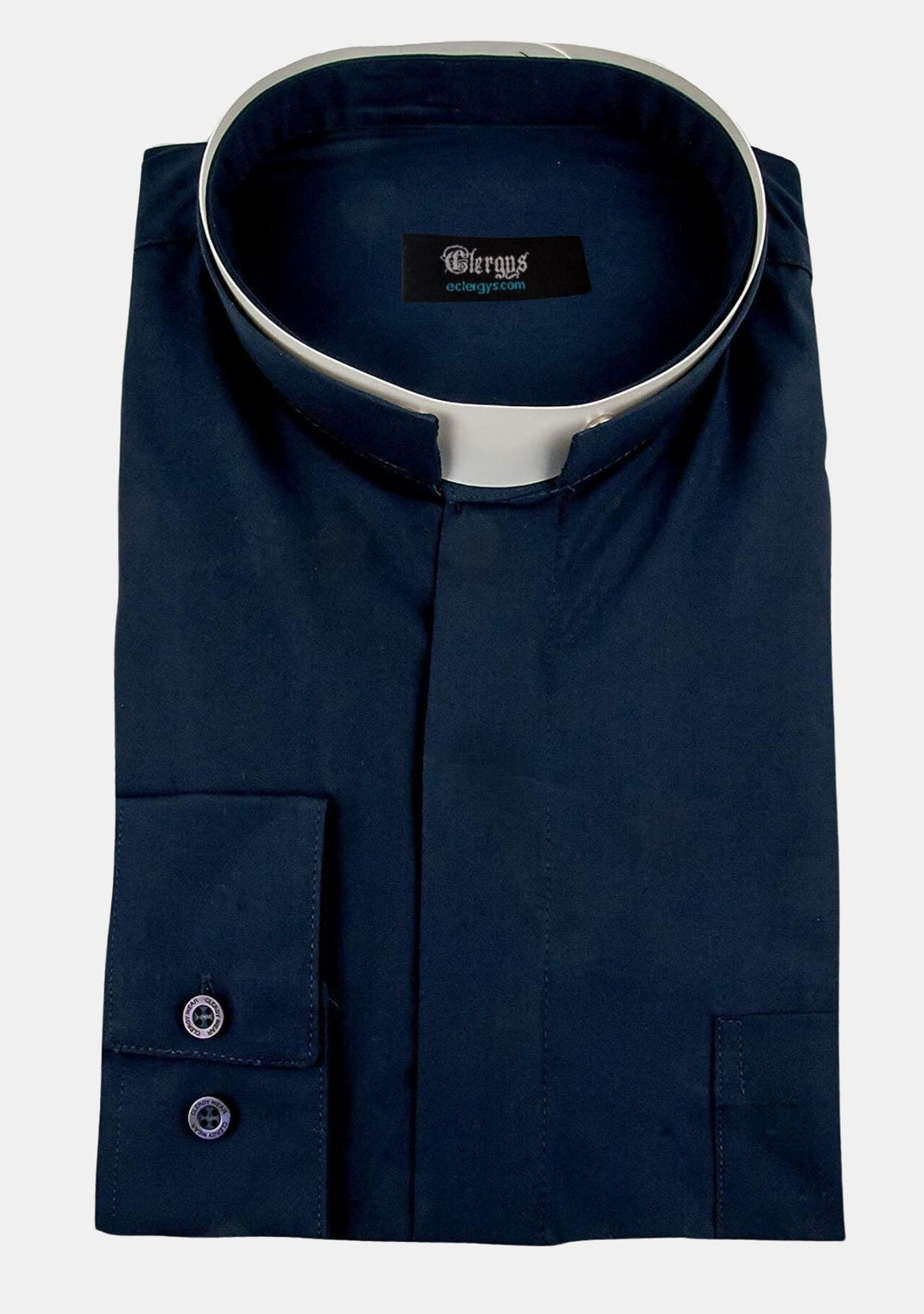 Chemise clergé bleu marine à col romain - Parfaite pour toutes les occasions - Achetez maintenant !