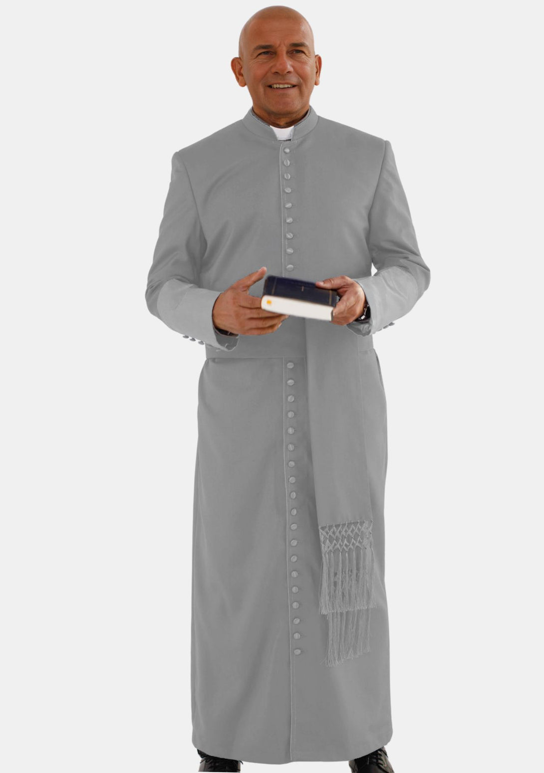 La soutane romaine Nathanael grise pour homme d'eClergys, avec poignets en satin, est une tenue spéciale portée par les hommes lors d'événements formels et religieux. Cette longue robe élégante, descendant jusqu'aux chevilles, est parfaite pour les cérémonies et les occasions spéciales. Sa couleur grise, simple et sophistiquée, convient à de nombreux contextes.