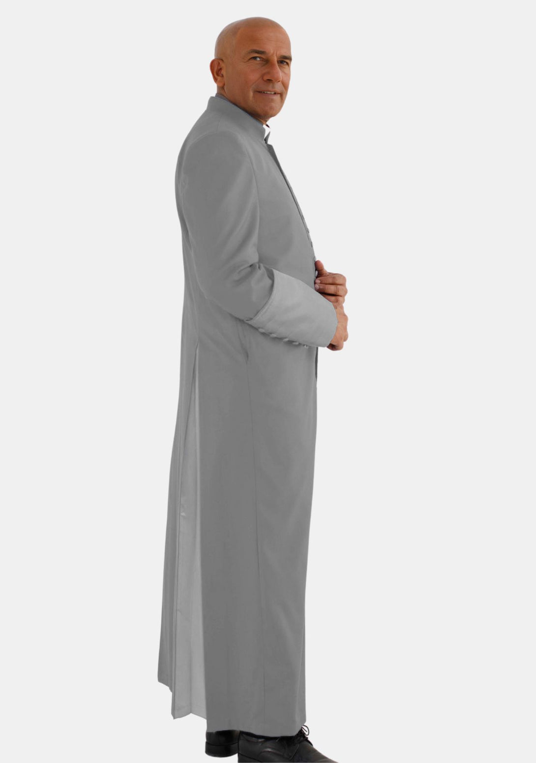 - Couleur grise élégante : La soutane est d'un gris classique. Cette teinte élégante et polyvalente permet de la porter avec différents accessoires ou vêtements.