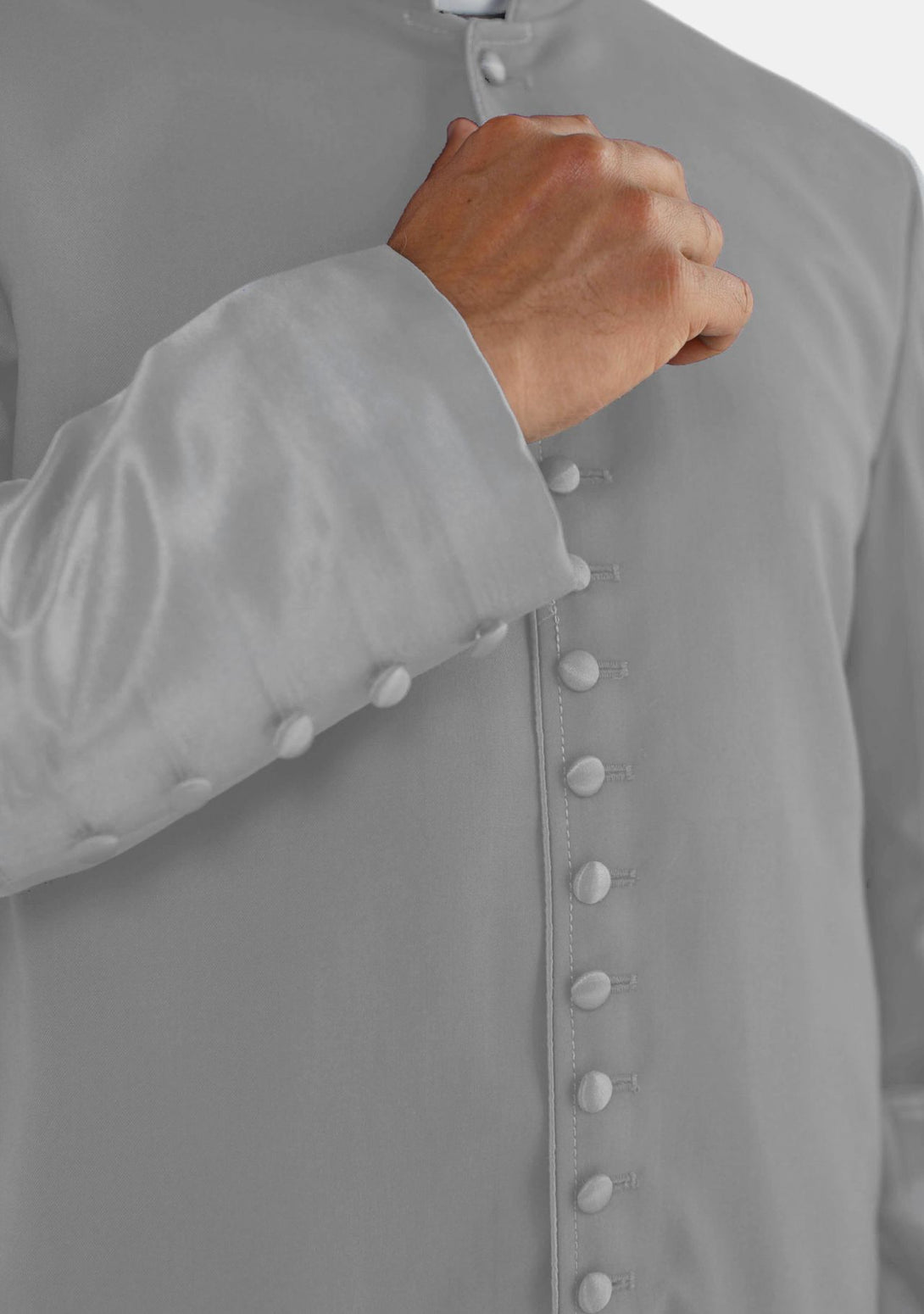 Caractéristiques de la soutane romaine grise pour homme avec poignets en satin.