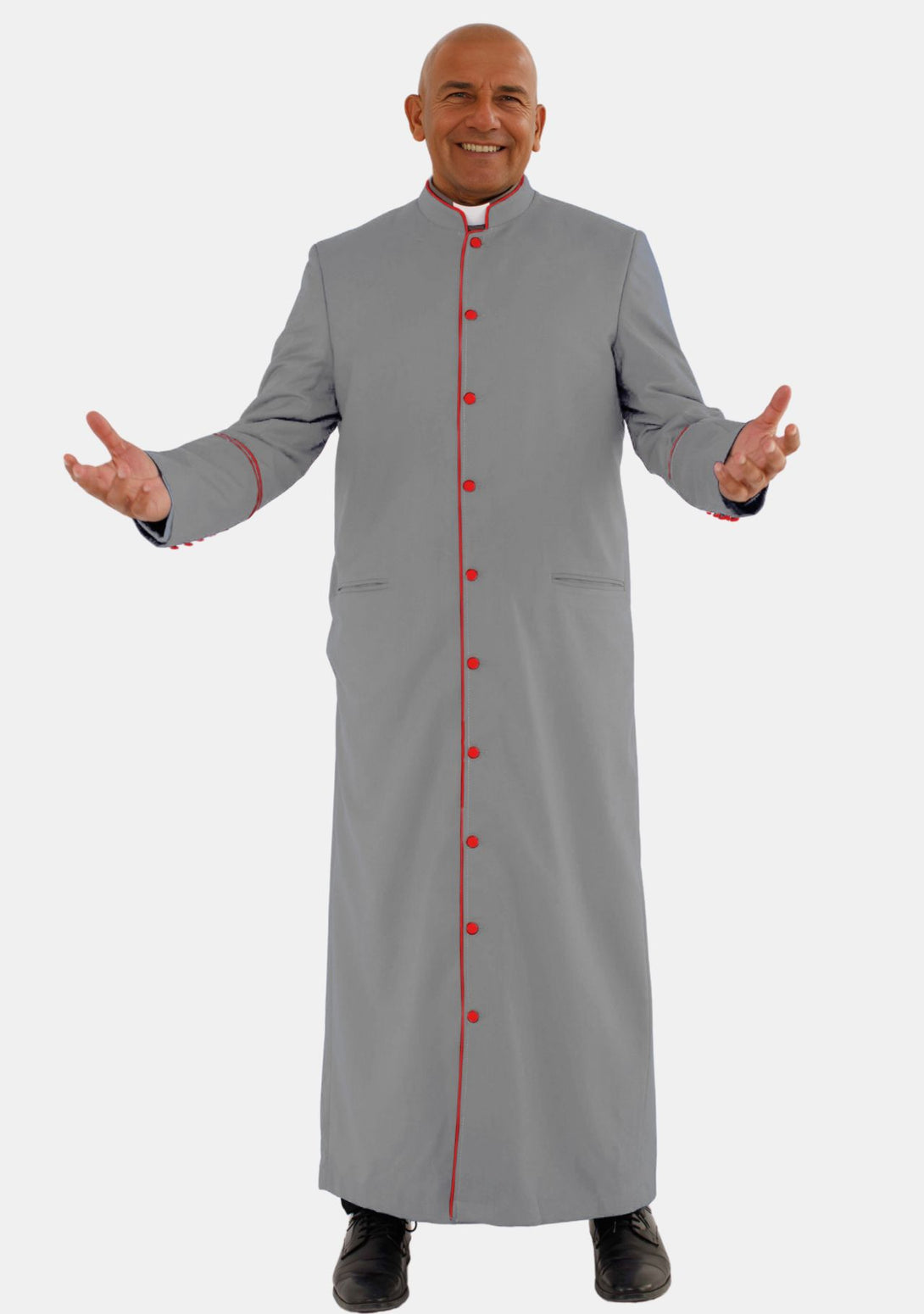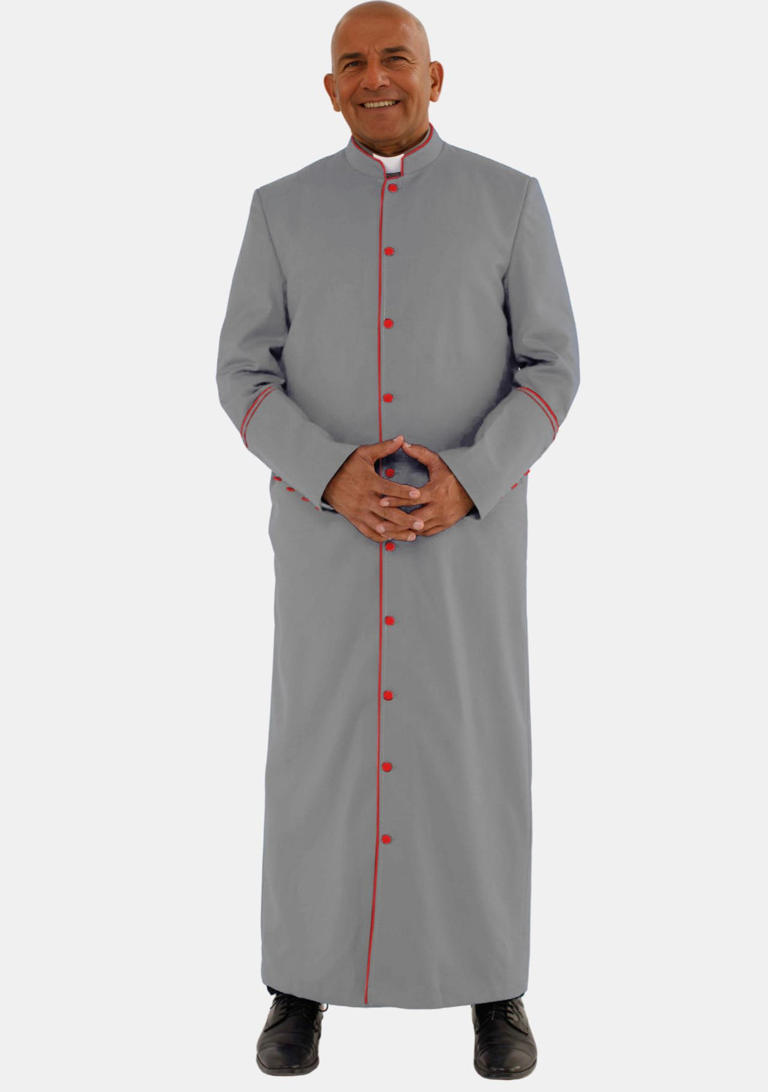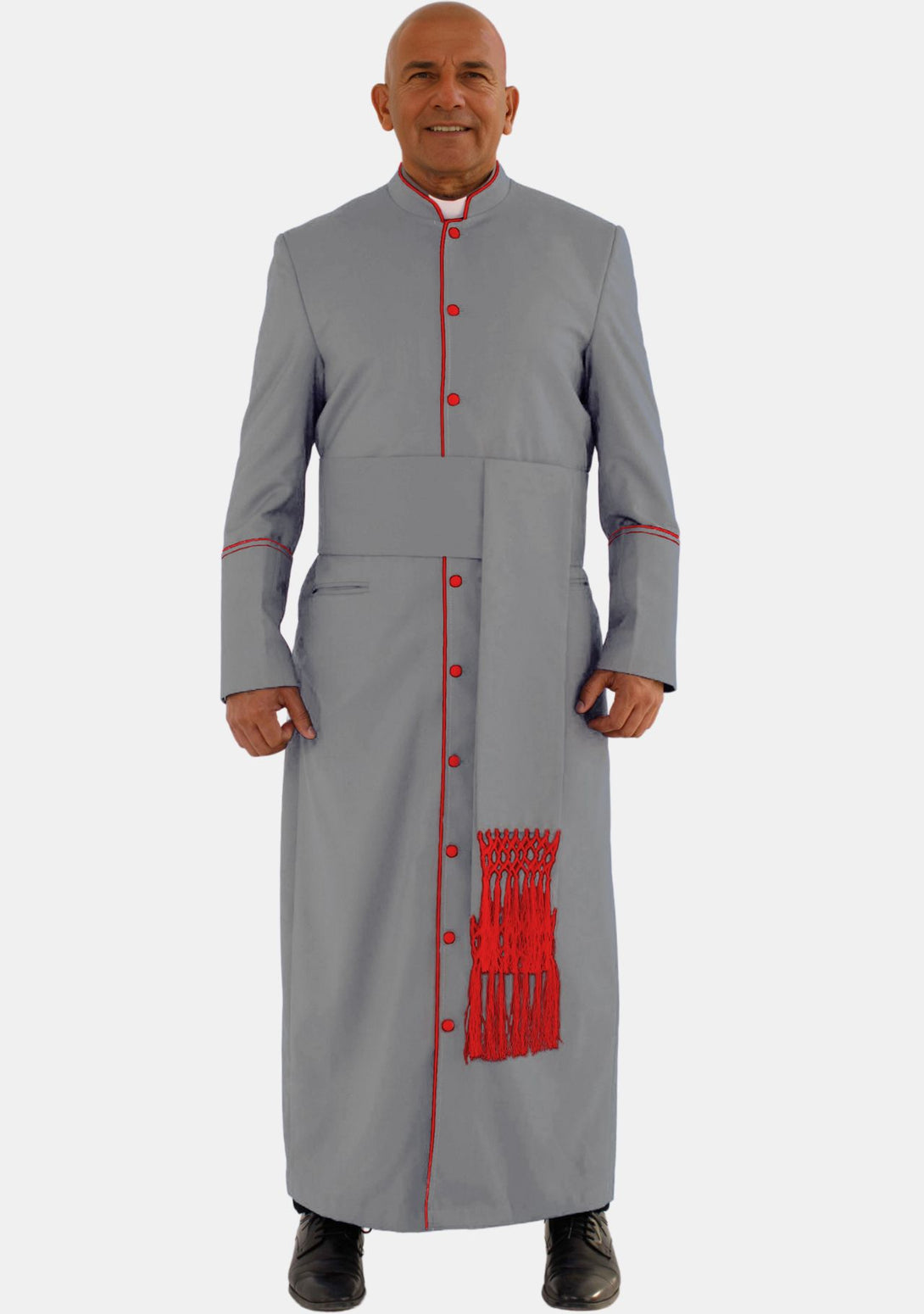 Affichez votre foi avec la robe du clergé Nadab grise et rouge