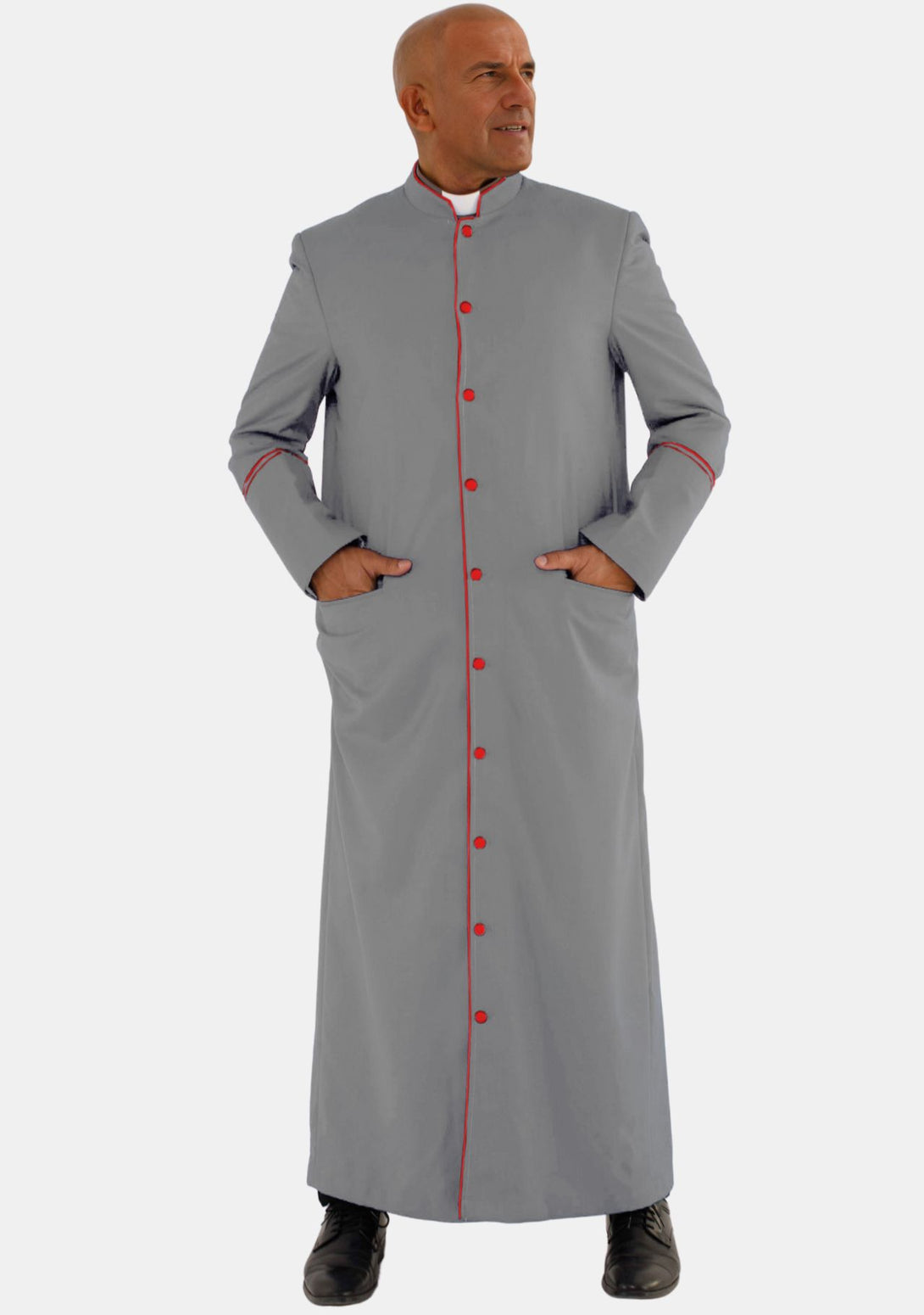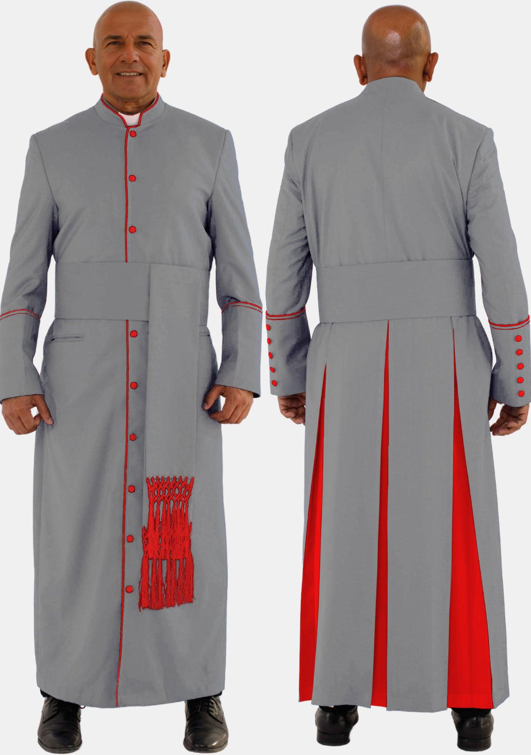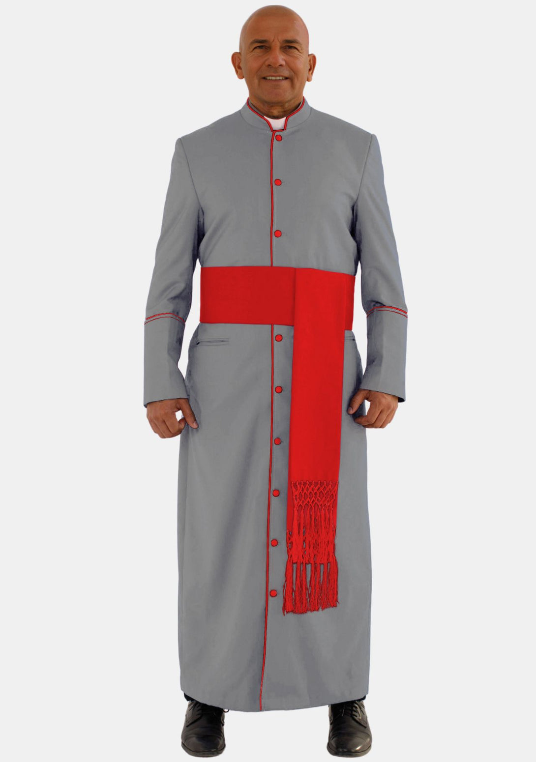 Affichez votre foi avec la robe du clergé Nadab grise et rouge