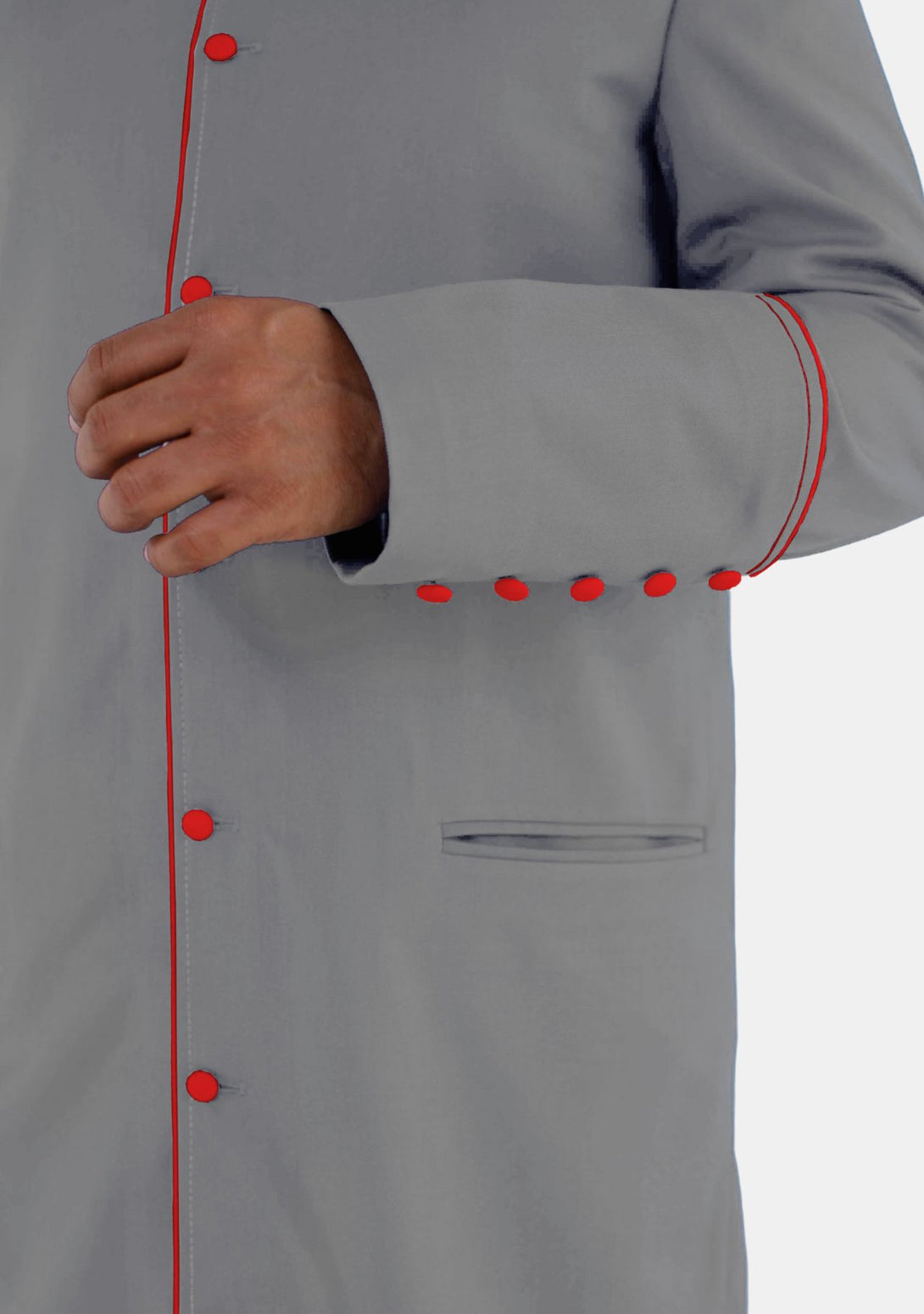 - Design élégant : la robe présente un mélange moderne de gris et de rouge, créant un look élégant et chic parfait pour tout service religieux.