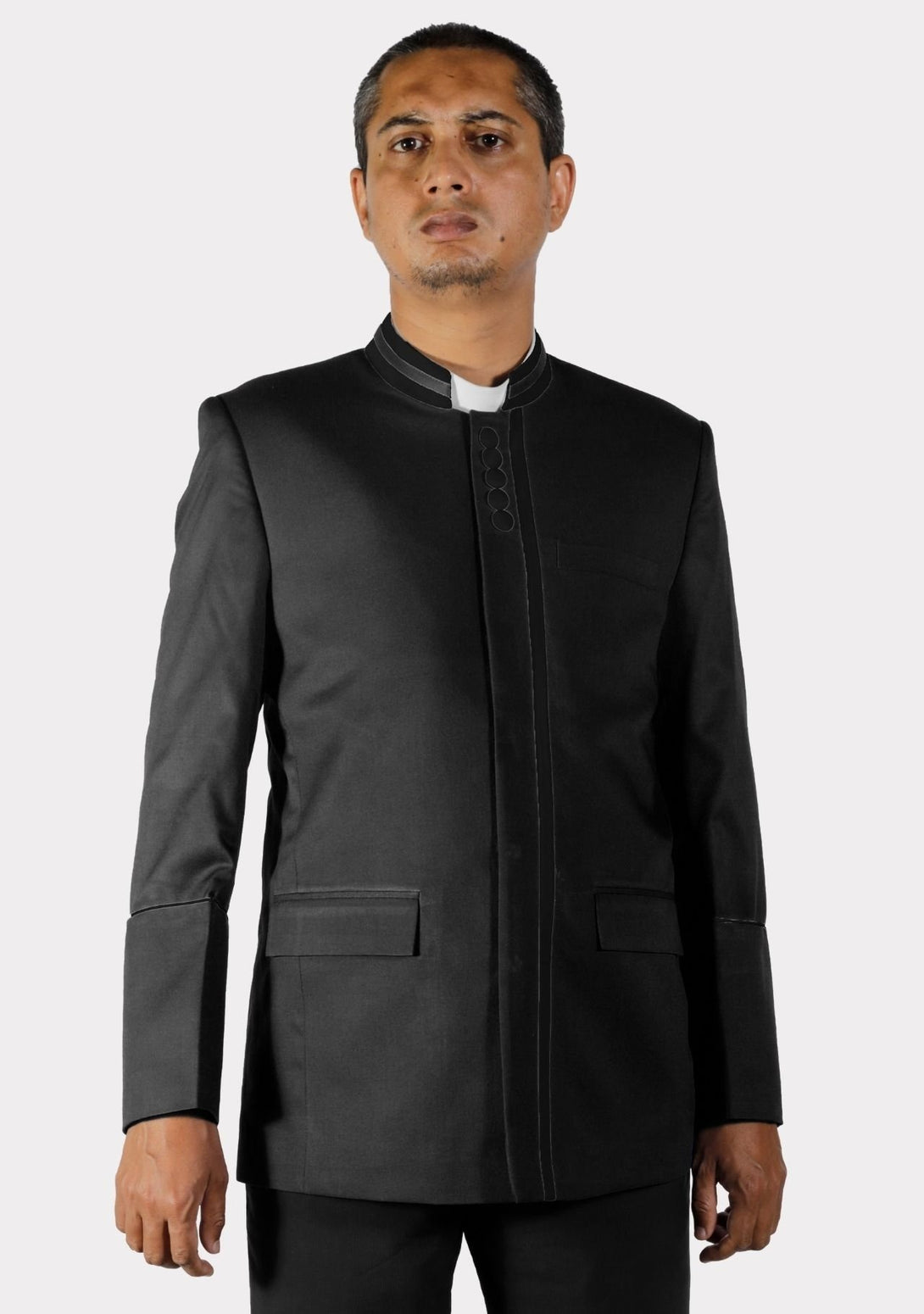 Découvrez la veste de pasteur noire à boutons modernes d'eClergy, inspirée de l'Arche de Noé, pour homme : l'alliance parfaite entre style et praticité. Confectionnée dans un tissu tropical de haute qualité, elle est conçue pour vous offrir confort et confiance lors de vos prédications.
