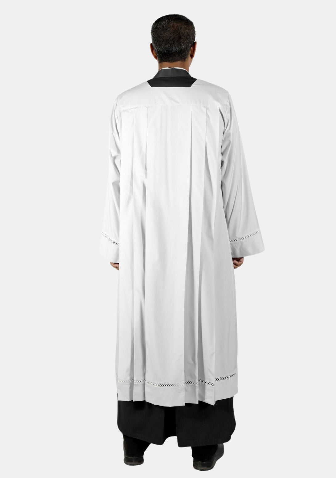 - Plis : L'Alb eClergys présente six plis devant et derrière, ajoutant une touche subtile et créant un drapé flatteur. Ces plis rehaussent l'esthétique générale et confèrent une allure sur mesure.