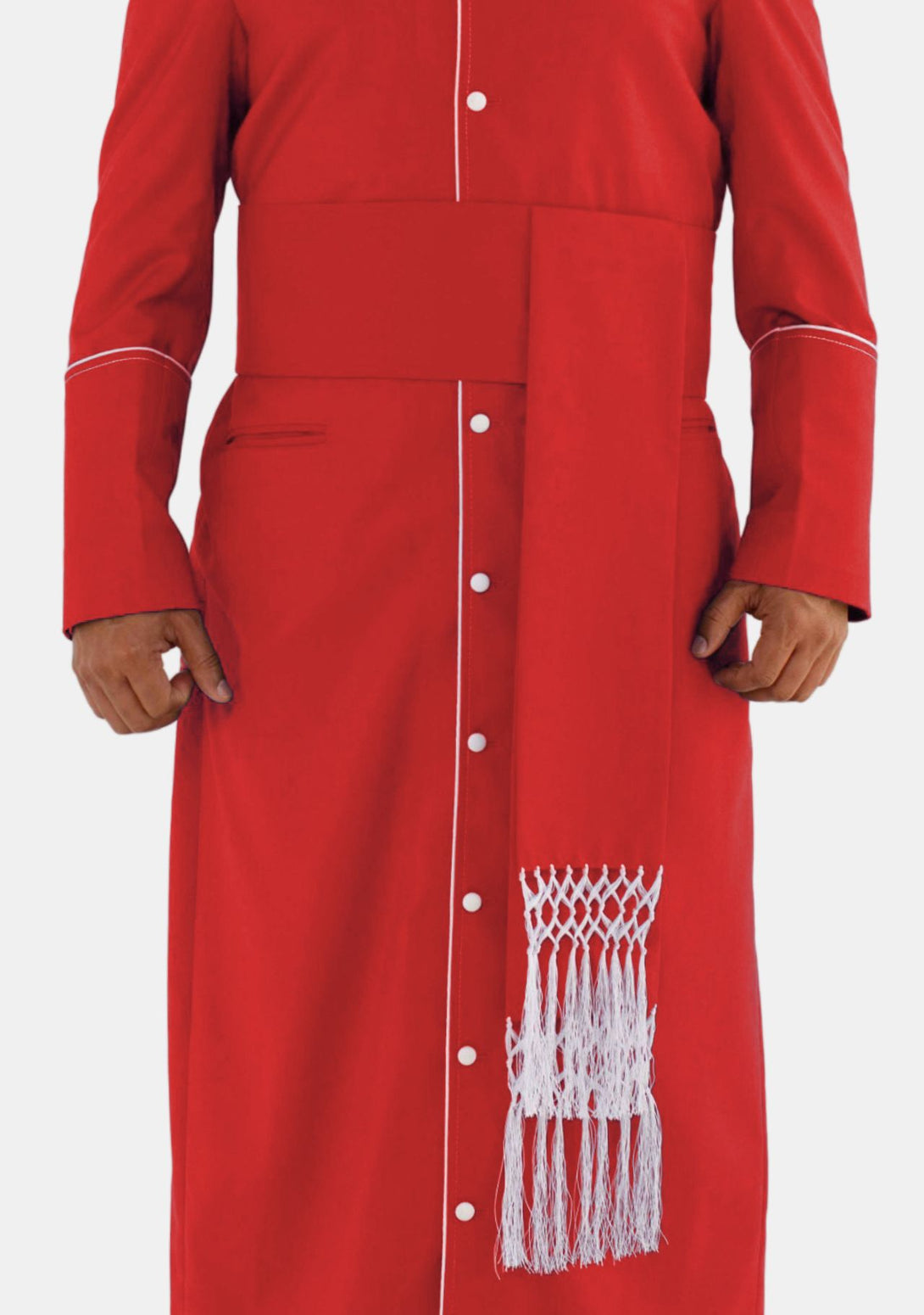 Une ceinture est plus qu'un accessoire : elle symbolise la foi, la dévotion et le leadership. Notre ceinture à bande rouge et franges blanches nouées est conçue pour les membres du clergé qui souhaitent ajouter une touche de tradition et d'élégance à leur tenue. Que ce soit pour le culte quotidien ou pour des cérémonies spéciales, cette ceinture complète votre look avec style et élégance.