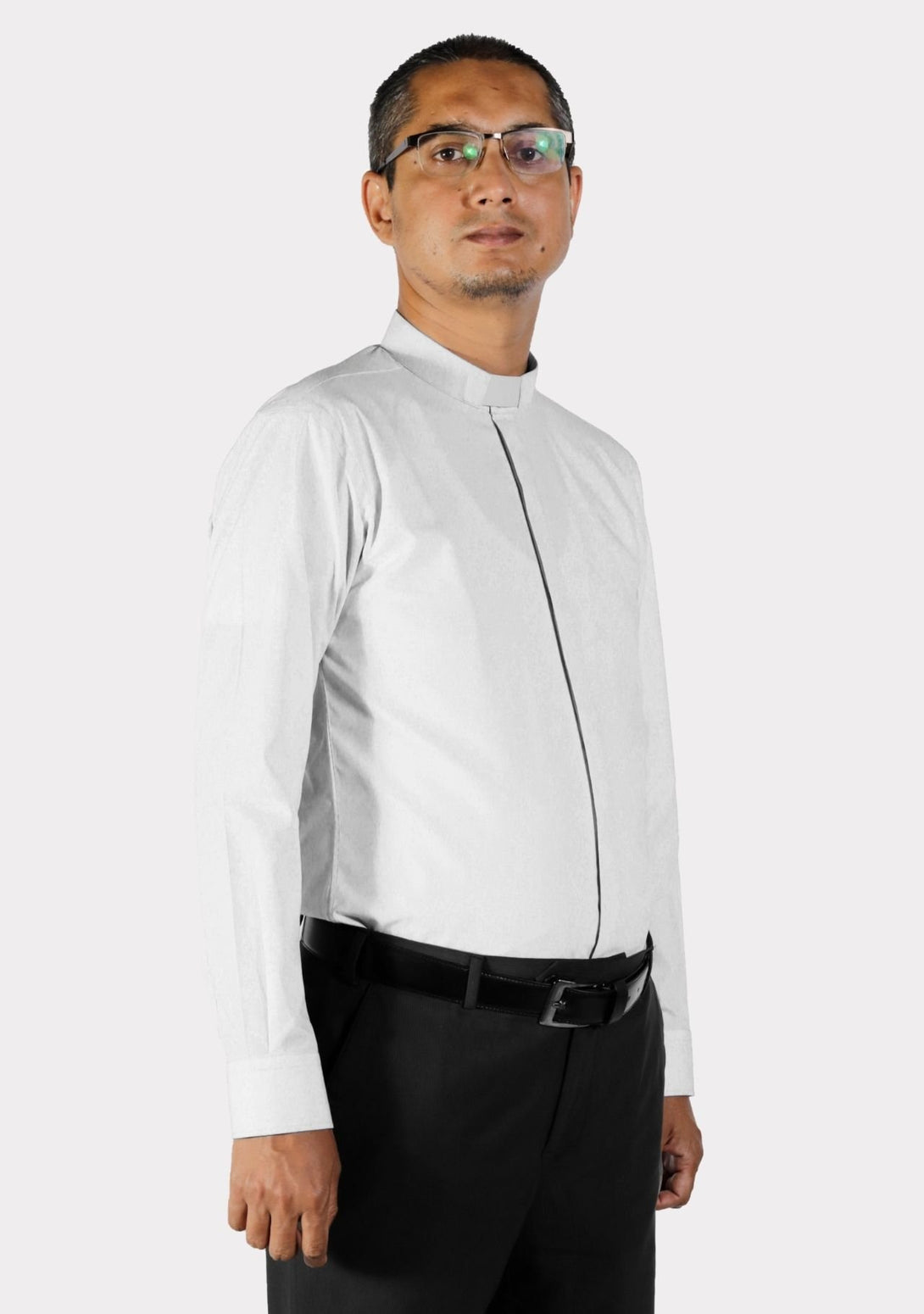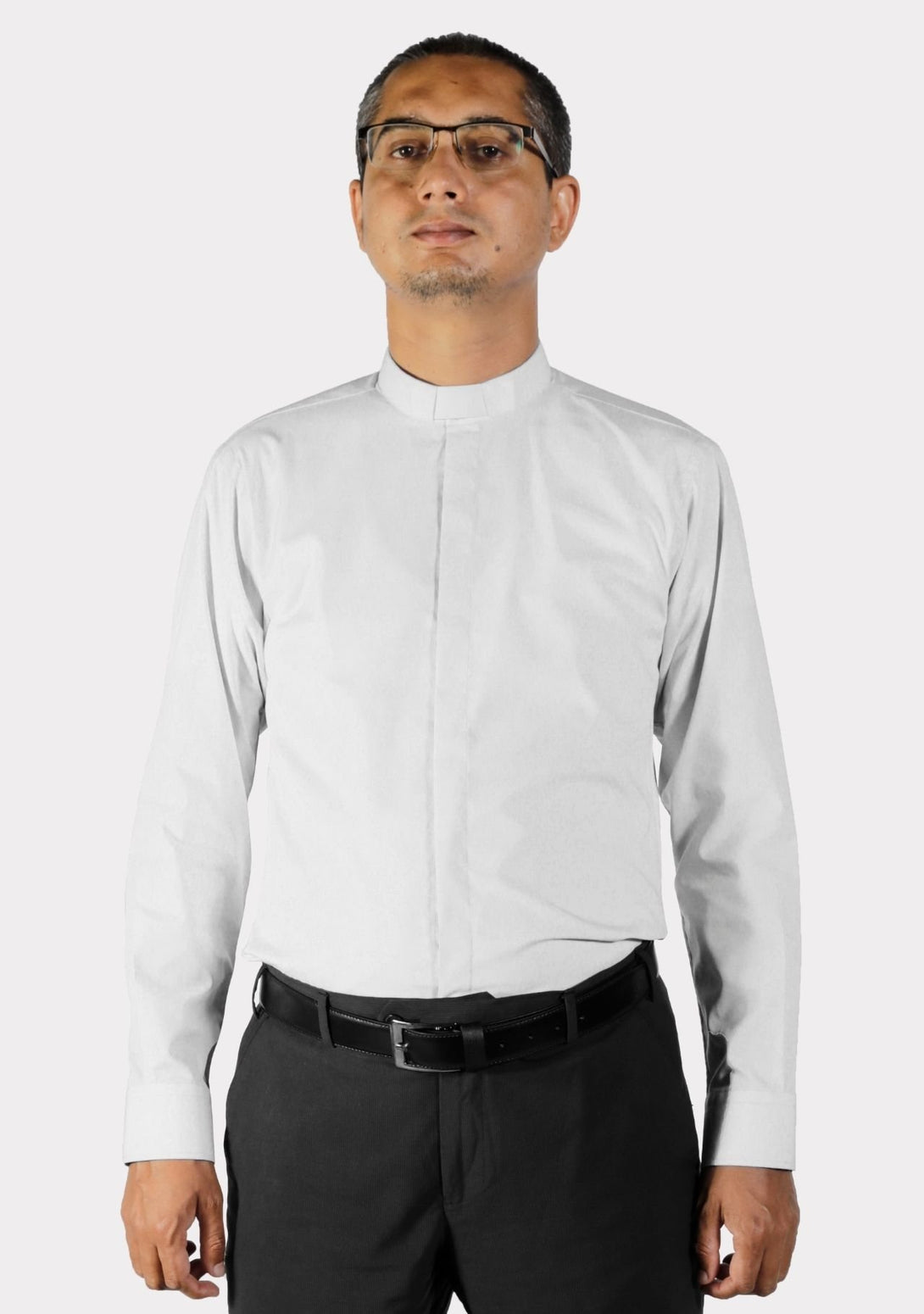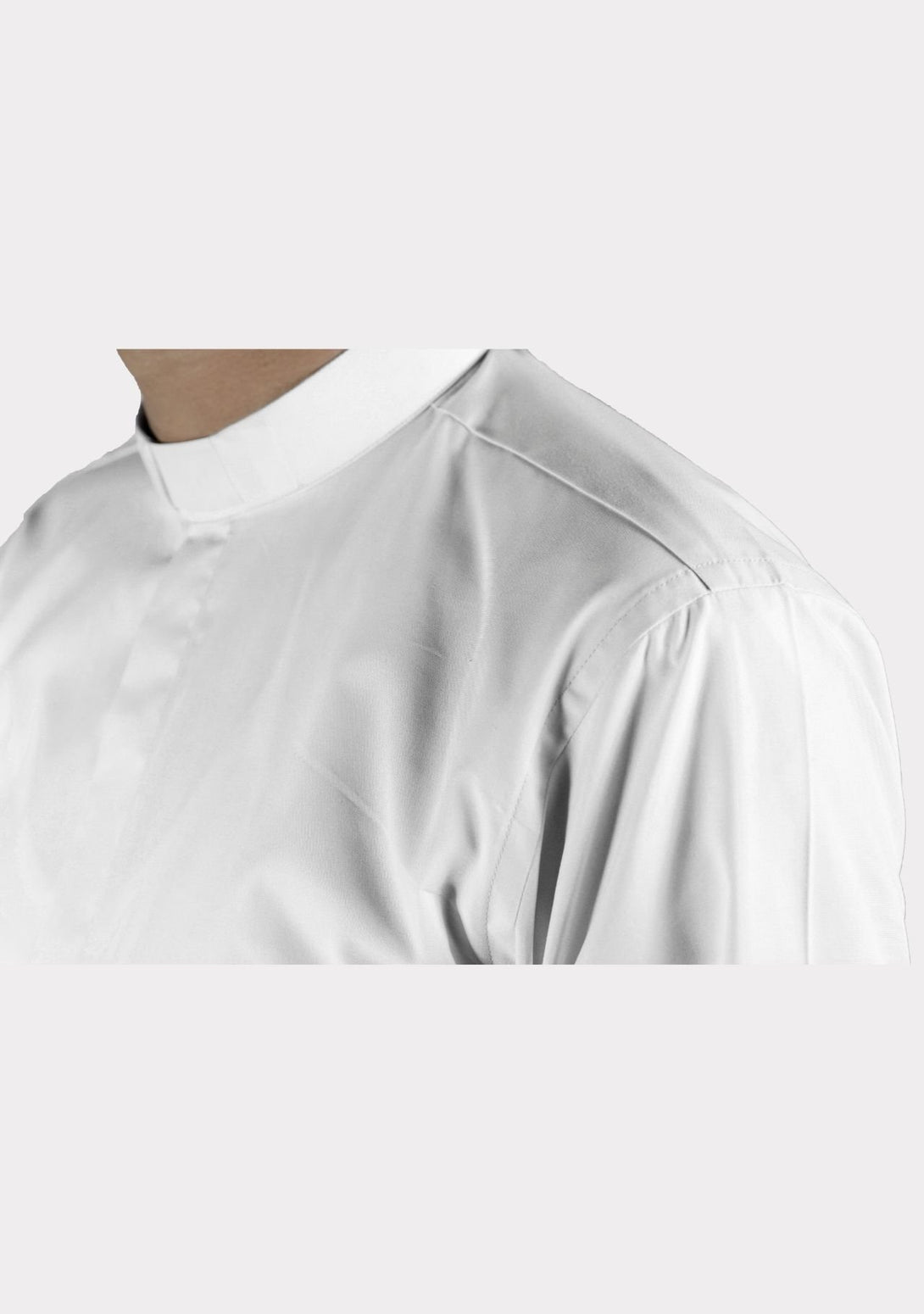 Caractéristiques de la chemise blanche à col tab et manches longues pour clergé.