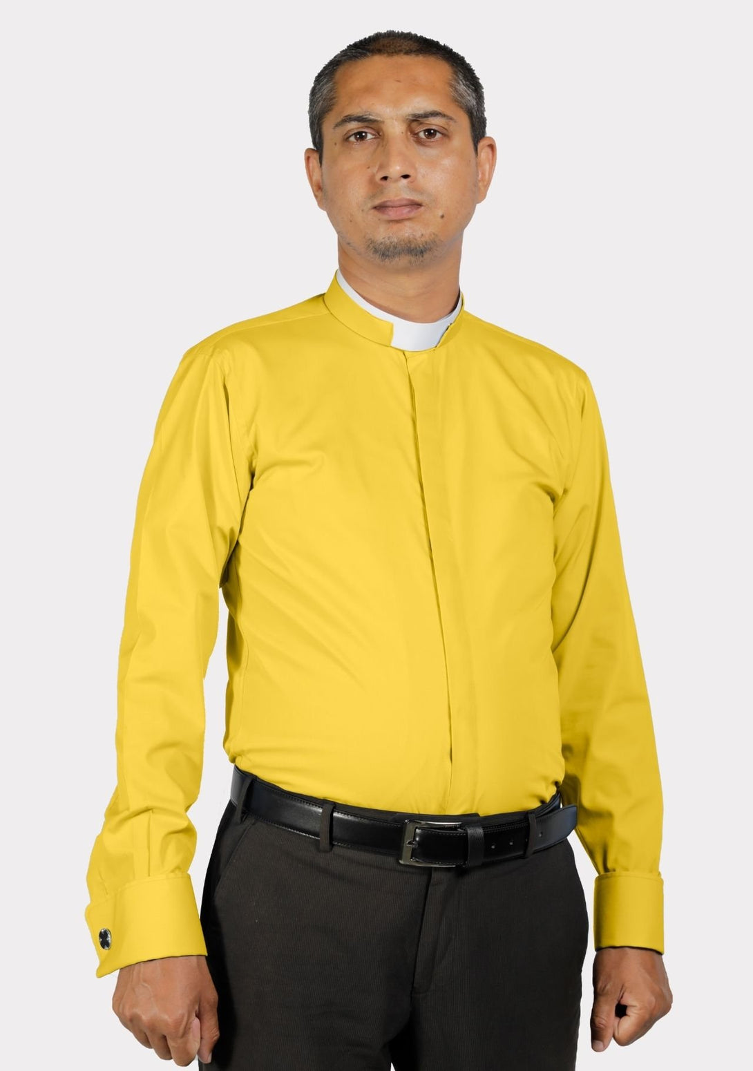 Offrez-vous le confort et le raffinement avec la chemise à col tonsure à manches longues dorées, une fusion de style traditionnel et de confort moderne, parfaite pour une tenue cléricale digne.