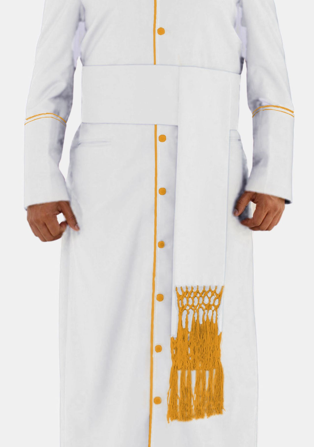 Ceinture blanche pour prêtre avec franges dorées – Idéale pour le culte