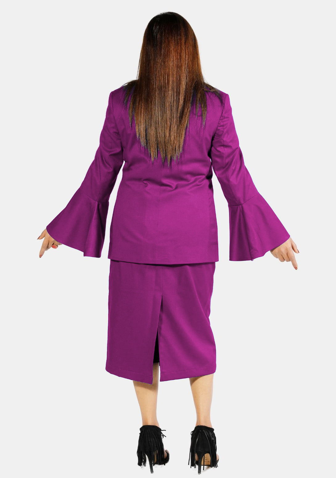 Un look royal avec un costume de prêtre pour femme à manches évasées rouge violet