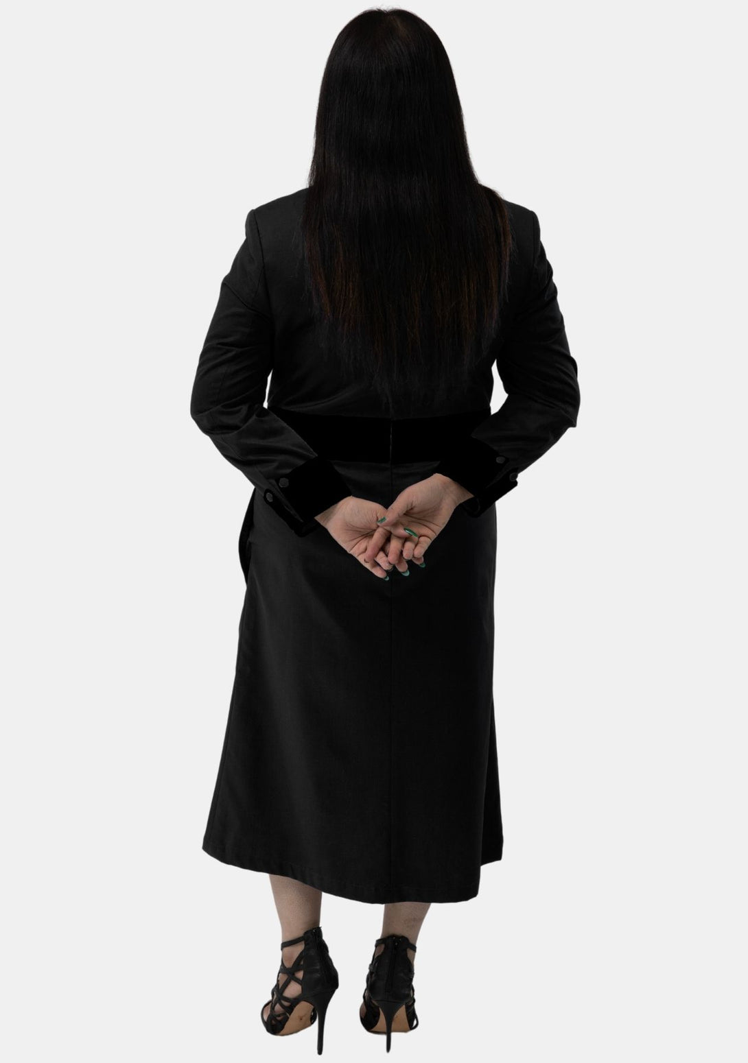 La robe de prêtre noire pour femme avec boutons de créateur symbolise la force, le leadership et l'évolution du rôle des femmes dans les lieux de culte. Elle vous permet d'afficher votre personnalité et votre dévouement à votre travail avec une tenue unique, à la fois tendance et importante.