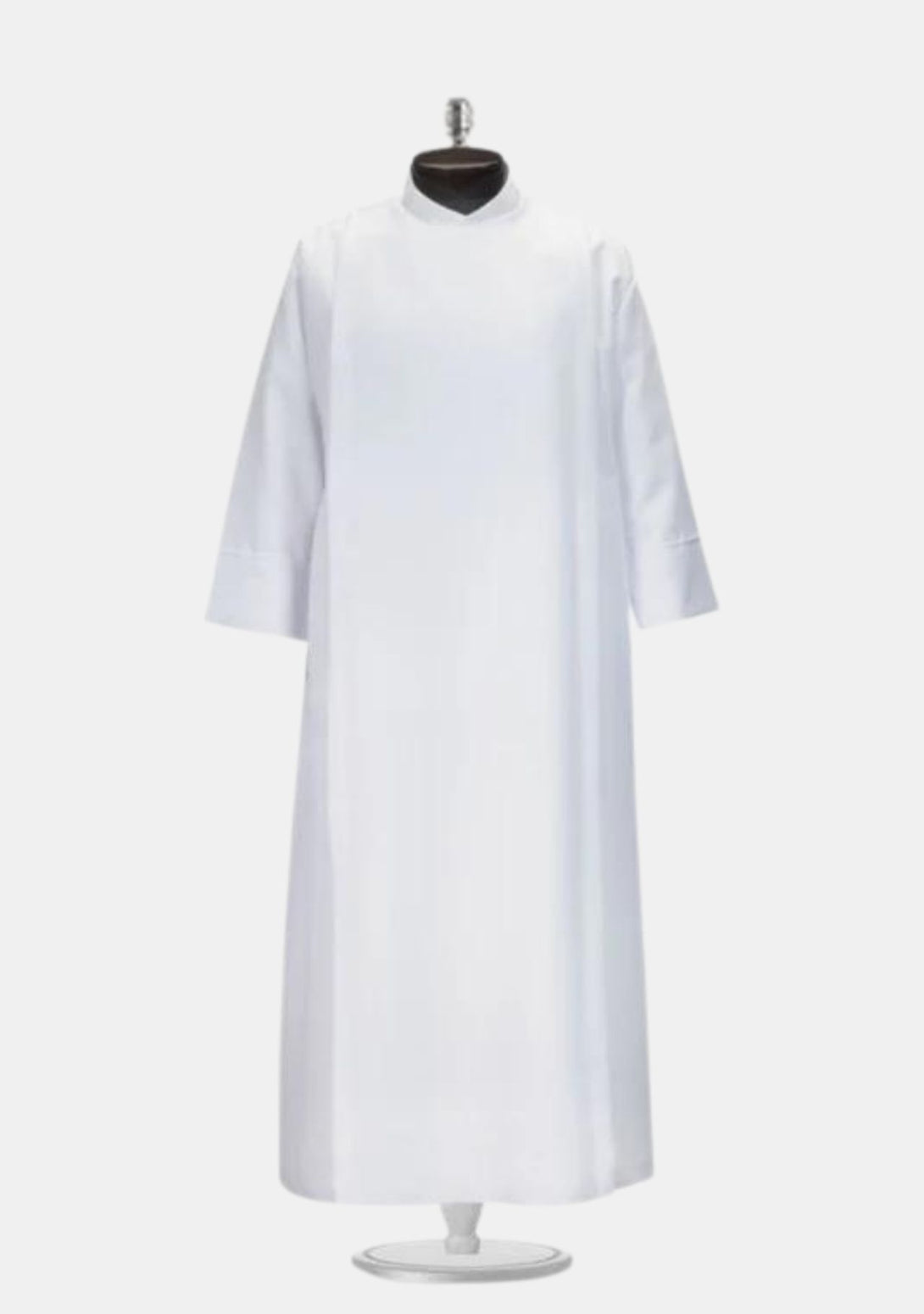 - Caractéristiques des plis : Alb enveloppant avec une ouverture sur toute la longueur sur le côté comporte quatre plis cousus, deux devant et un derrière.